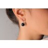 Alliance parfaite du moderne et du classique. La bague GRETA est sertie en son centre d'un onyx rond de taille briolette. L'entourage est serti de diamants blancs pour un poids total de 0.20ct.